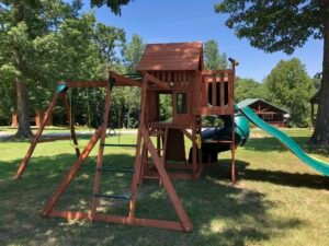 Clean and comfortable housekeeping cabins, fully furnished kitchens including utensils, dishes, pot, pans, and coffee pot.